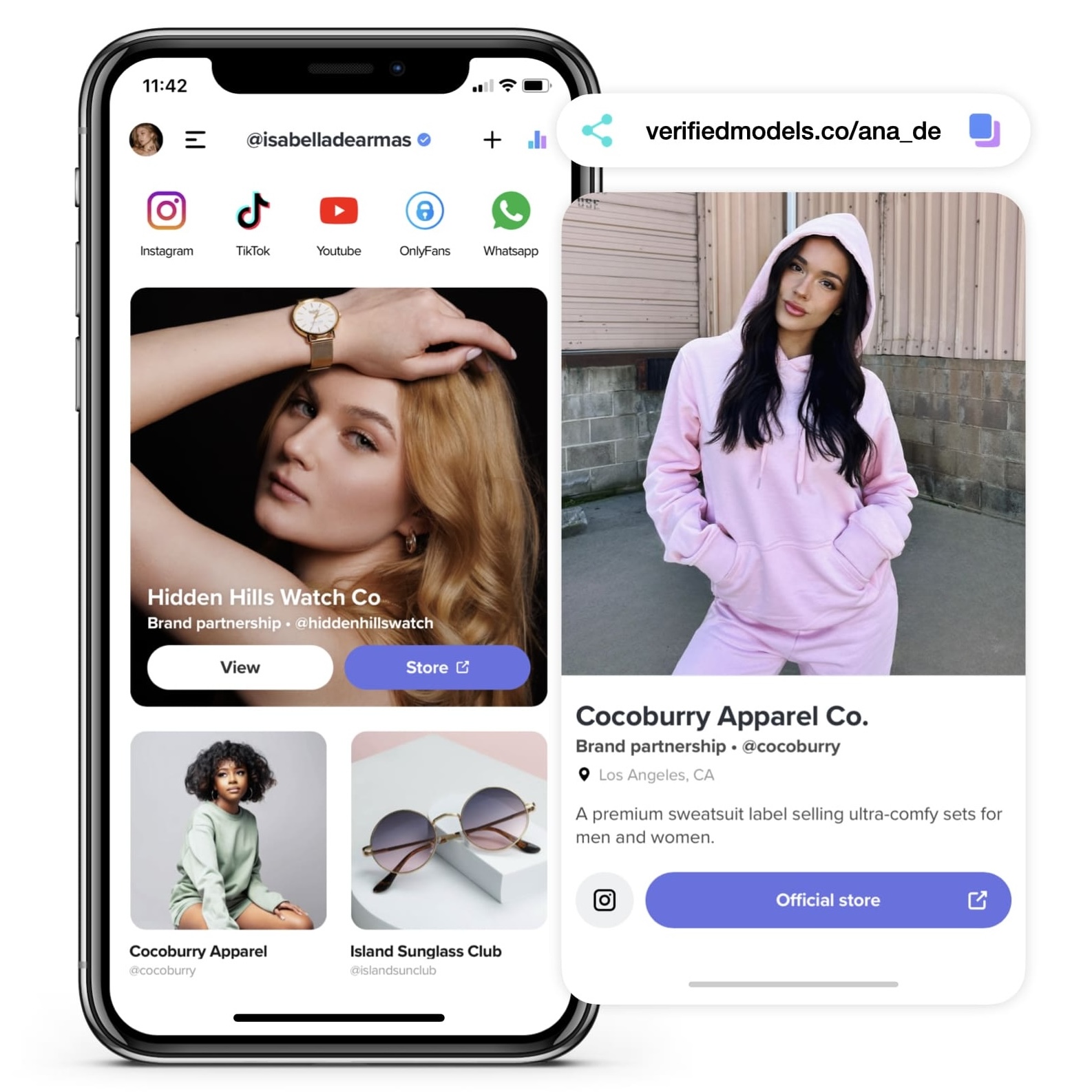 Once you complete your one-time setup, your model account will be active and verified instantly. You'll be able to add your social links and start adding brand partnerships right away.